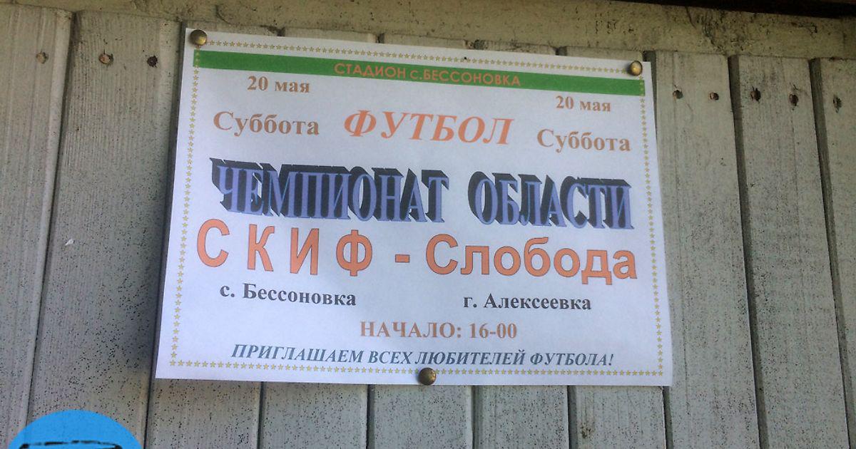 Один из лидеров Чемпионата Белгородской области «Слобода» из Алексеевки , прибыл на игру за час до матча и прямиком из автобуса футболисты направились тестировать газон, покрытый одуванчиками. Поляна стадиона радовала глаз, поскольку была не искусственной. На воротах была туго натянута сетка, а один из работников расставлял угловые флажки, предсказывая их падения. Трибуна также оказалась живописной: старые скамеечки, ручное табло над металлическим козырьком, укрывающим вход в подтрибунное помещение. Под этим козырьком сидела бригада из одного врача со старым чёрным чемоданом. За одними воротами расположись две массивные трубы, откуда точно открывается роскошный вид на поле и его окрестности, а за другими — искусственное поле, где в форме «Ливерпуля» и «Юве» гоняли с мячом местные ребятишки. Футболисты СКИФа обошлись без клубного автобуса и добирались до стадио на машинах и пешком. СКИФ также хорошо начал турнир, выиграв два раза в трёх играх с показателем мячей 12-5.