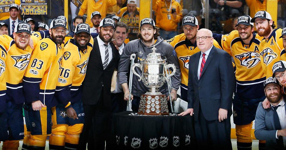 Все 6 матчей выдались непростыми для команды из штата Теннесси. Травмы капитана команды Майка Фишера, одного из лидеров команды Райана Джохансена не сломили Предаторз. Хотелось бы отметить следующих парней: Колтон Сиссонс – этот нападающий переломил чашу весов в пользу саблезубых тигров (оформил хет-трик в 6 матче), Филип Форсберг – в отсутсвии партнёров вёл свою команду за собой, Пи Кей Суббэн – лидер обороны не позволил усомниться в своих навыках, Пекка Ринне – без этого парня ничего бы не было (именно его считаю главным творцом победы в финале Запада).