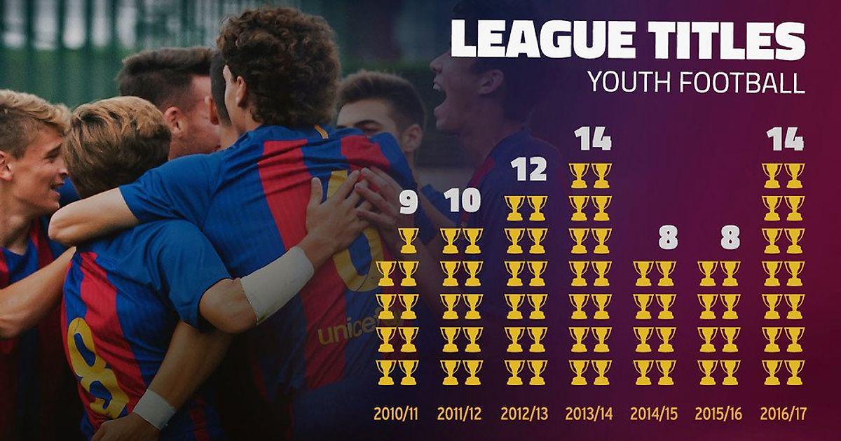 Barça B, Juvenil A y B, Cadete A y B, Infantil A y B, Alevín A, C y D, Benjamín A, B y C, Prebenjamín.