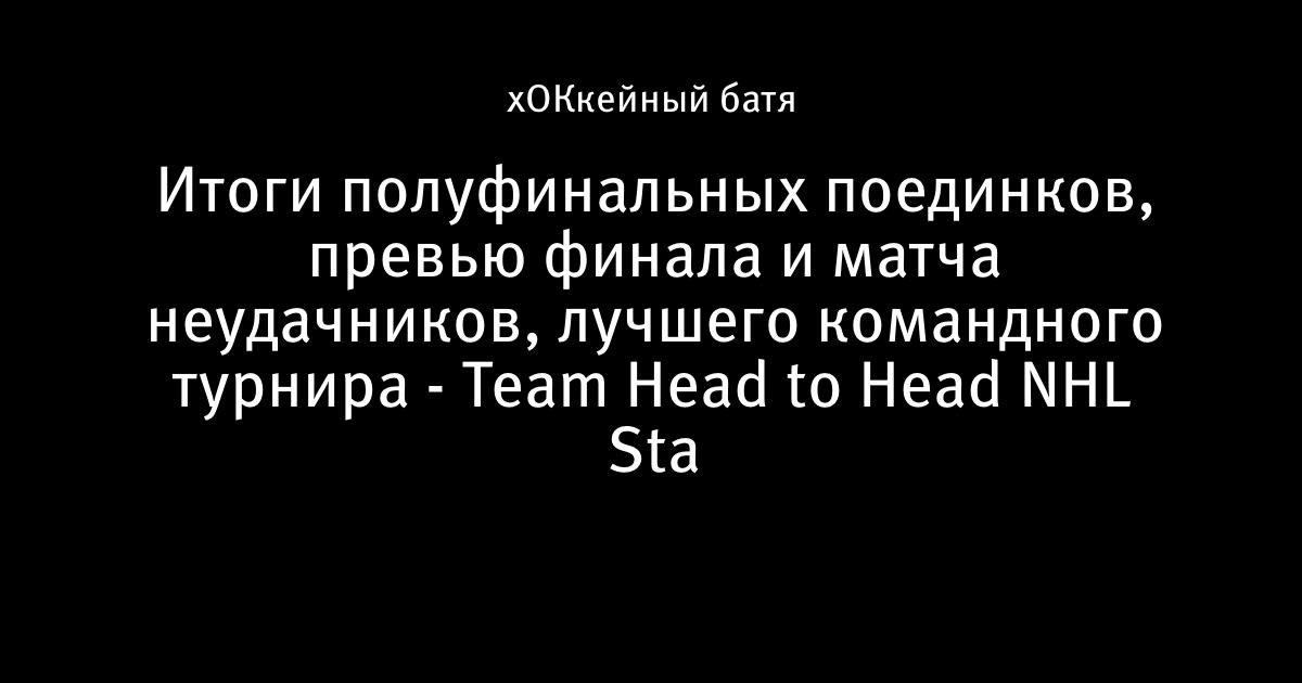 Итоги полуфинальных поединков, превью финала и матча неудачников, лучшего командного турнира - Team Head to Head NHL Sta