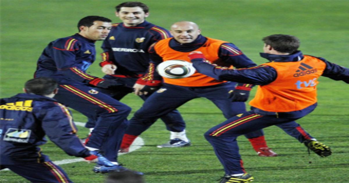 Тренировочное занятие заняло 50 минут, хорошо разогревшись, игроки сыграли двусторонку на поле, ограниченном четырьмя воротами, причем в этой игре Висенте дель Боске смешал всех игроков, включая трех вратарей: Икера Касильяса, Пепе Рейну и Виктора Вальдеса, действовавших, как полевые игроки.