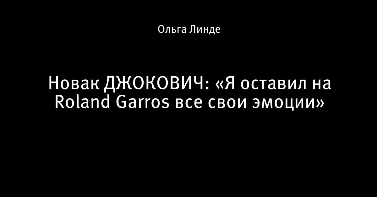 Новак ДЖОКОВИЧ: «Я оставил на Roland Garros все свои эмоции»