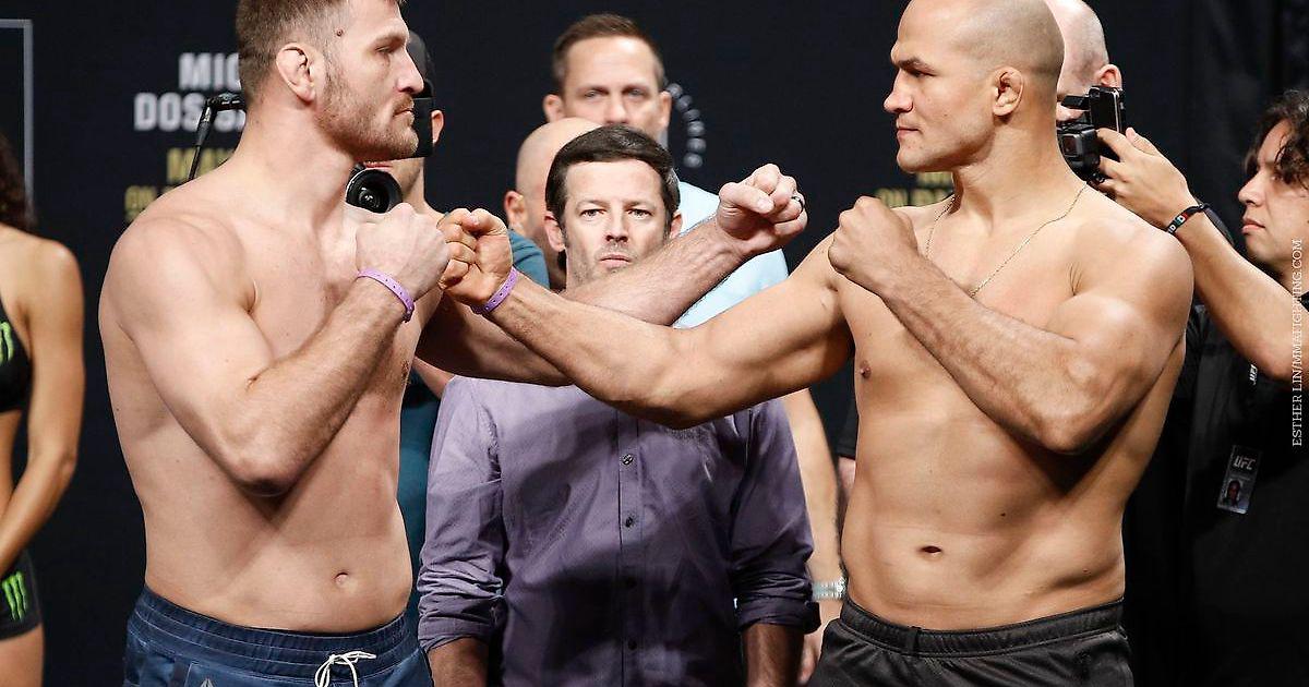 Чемпион, встретился с экс Чемпионом, каждый из бойцов имел по две победы в чемпионских поединках, но в отличии от непобежденного Миочича, Джуниор Дос Сантос, дважды проигрывал в бою за титул. Кроме этого, Миочич и Дос Сантос уже встречались в октагоне и победу одержал Дос Сантос, таким образом, Чемпион имел возможность реваншировать свое поражение, которой успешно воспользовался.