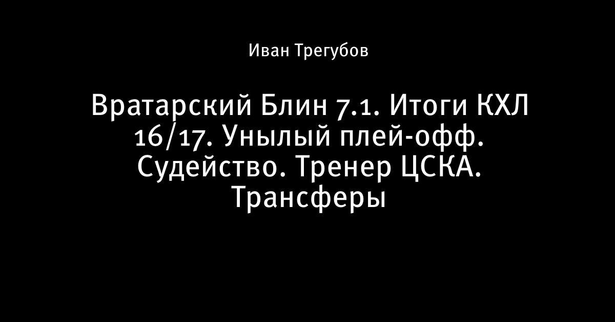 Вратарский Блин 7.1. Итоги КХЛ 16/17. Унылый плей-офф. Судейство. Тренер ЦСКА. Трансферы