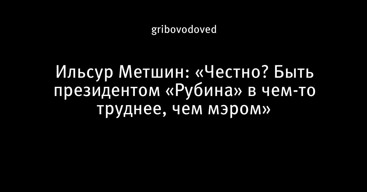 – Это уже вопрос к новому президенту, но Республика Татарстан и Казань никогда не согласятся с амбициями второго плана. Как говорит Минтимер Шарипович [Шаймиев], всё, кроме золота, - сплав. Впереди у нас столетие республики. Событие для республики знаковое, и победа «Рубина», о которой будут говорить за пределами России, будет самым лучшим подарком и стране, и республике и всем её жителям.