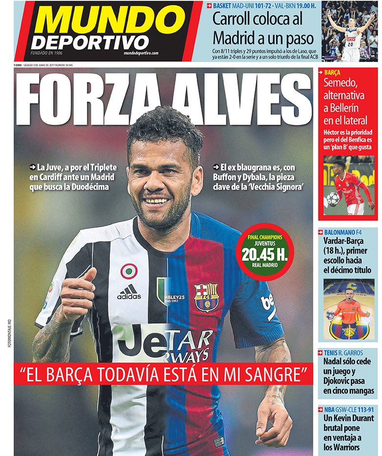 3 июня 2017, 17:55 Каталонская пресса поддержала «Ювентус» Автор Сергей Таров Этот пост опубликован в блоге на Трибуне Sports.ru. Присоединяйтесь к крупнейшему сообществу спортивных болельщиков! Другие посты блога Barça Лига чемпионов УЕФА Барселона Ювентус Дани Алвес