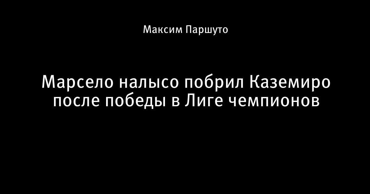 4 июня 2017, 14:19 Марсело налысо побрил Каземиро после победы в Лиге чемпионов Автор Максим Паршуто Этот пост опубликован в блоге на Трибуне Sports.ru. Присоединяйтесь к крупнейшему сообществу спортивных болельщиков! Другие посты блога Вы это видели? Лига чемпионов УЕФА Реал Мадрид Каземиро Марсело