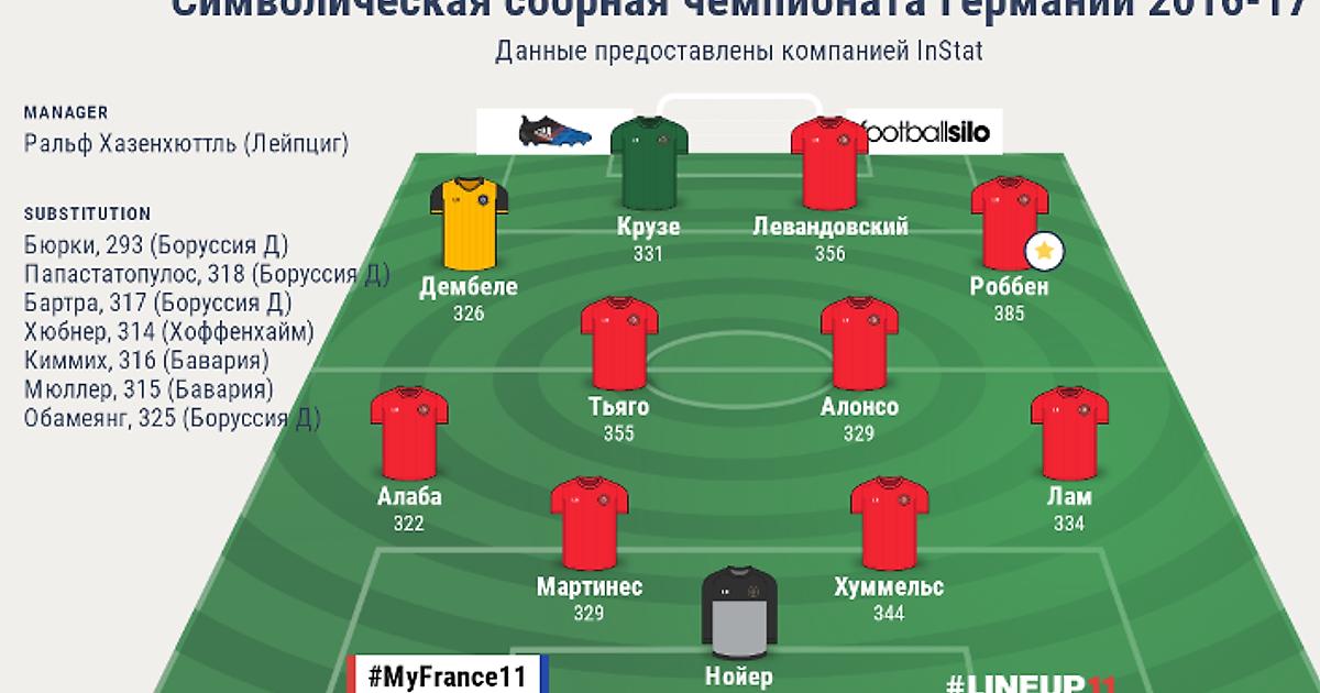 Тут, по большому счёту, и сказать-то особо нечего. Хоть и бился самоотверженный "Лейпциг" и обозначала давление дортмундская "Боруссия", да вот против лома нет приёма. И в основном составе этой алой сборной инородными телами выглядят Макс Крузе из "Вердера" и Усман Дембеле из упомянутой выше "Боруссии". И, конечно, можно удивиться тому, что Пьер-Эмерик Обамеянг - лишь запасной форвард. Такие вот немецкие расклады.