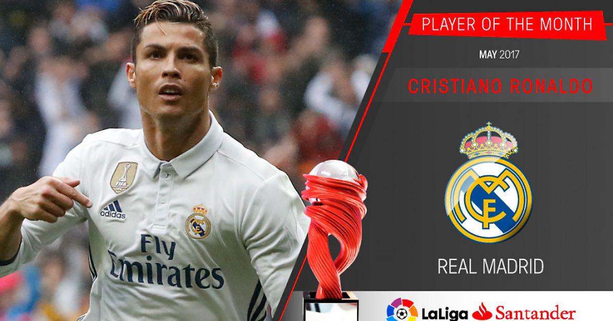 Нападающий Реал Мадрид Криштиану Роналду, был назван LaLiga Сантандер игроком месяца в мае в знак признания его выдающихся выступлений за Реал Мадрид. Его качества и стремления оказались решающими в последних играх клуба сезона, когда он сыграл ключевую роль в победе команды Зинедина Зидана.