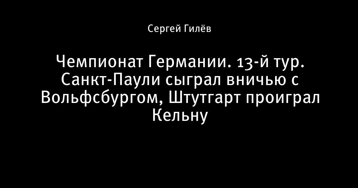 Чемпионат Германии. 13-й тур. Санкт-Паули сыграл вничью с Вольфсбургом, Штутгарт проиграл Кельну