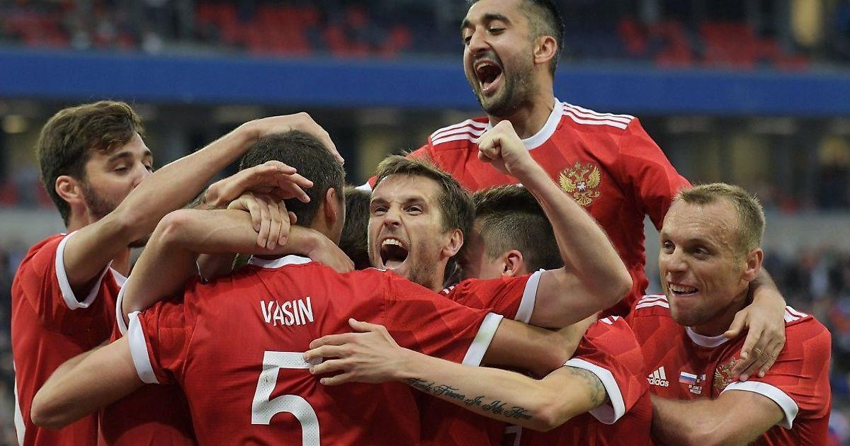 Вариант матча против Чили (за исключением замены Джикии на Шишкина). Самедов неожиданно оказался в середине поля, при атаках образуя узкий четырехугольник с Глушаковым, Головиным и Миранчуком.
