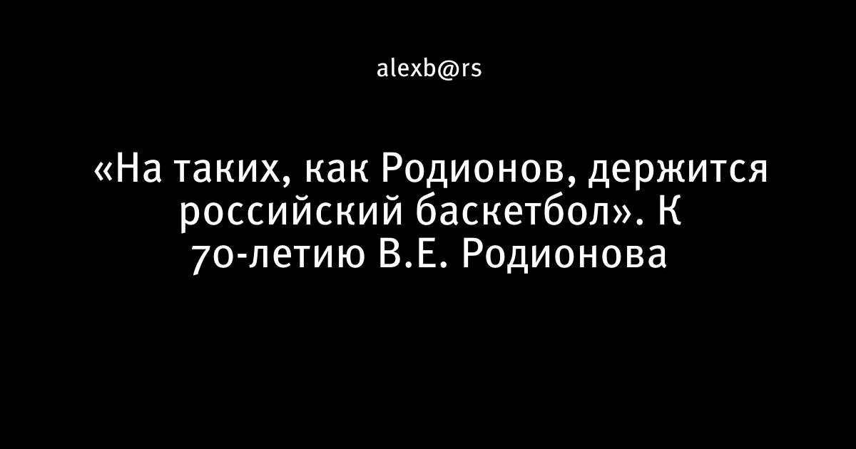 «На таких, как Родионов, держится российский баскетбол». К 70-летию В.Е. Родионова