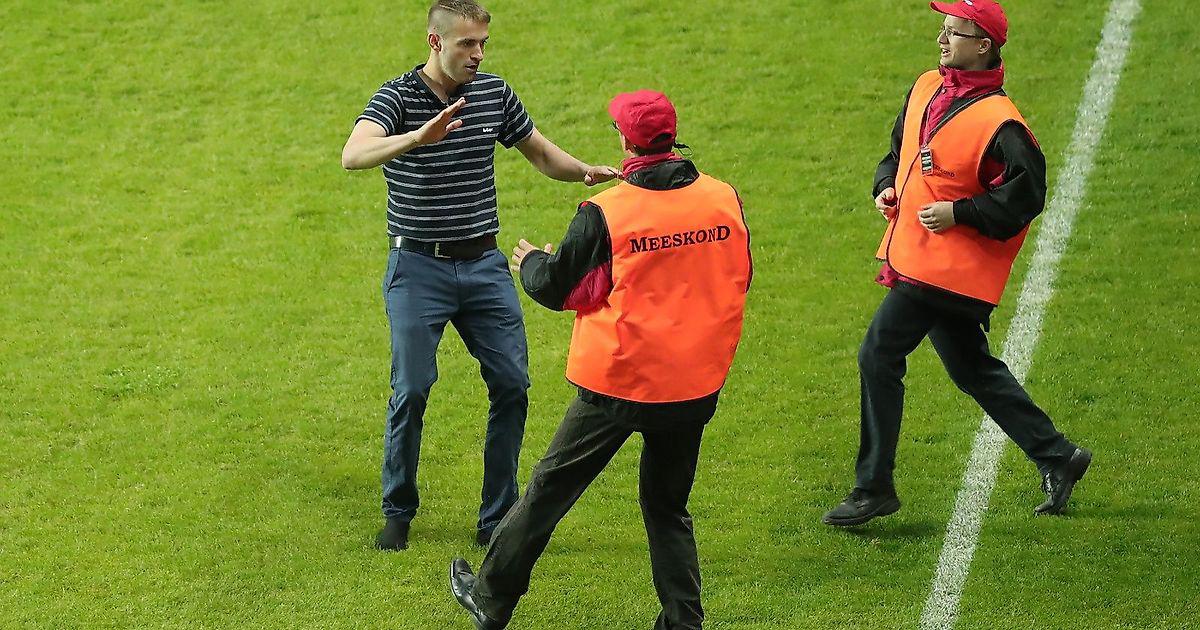 Личность болельщика, выбежавшего на поле, известна Футбольному союзу. "Он не относится ни к одной фан-группе, это был обыкновенный болельщик", - сказал пресс-офицер ЭФС Михкель Уйболехт.