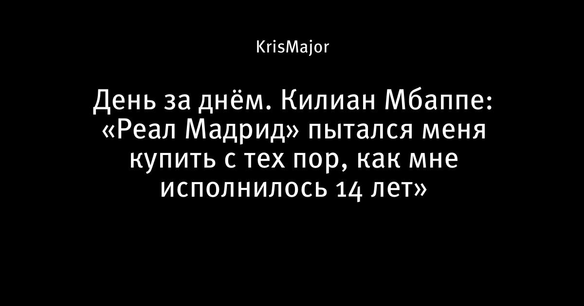 День за днём. Килиан Мбаппе: «Реал Мадрид» пытался меня купить с тех пор, как мне исполнилось 14 лет»