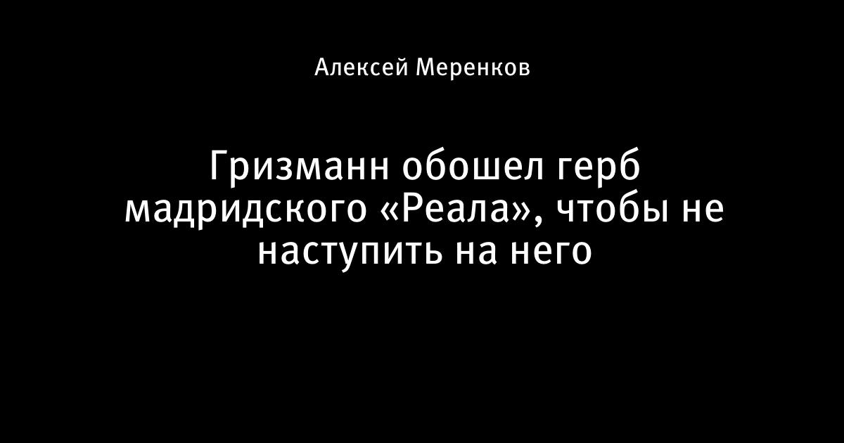 14 июня 2017, 19:57 Гризманн обошел герб мадридского «Реала», чтобы не наступить на него Автор Алексей Меренков Этот пост опубликован в блоге на Трибуне Sports.ru. Присоединяйтесь к крупнейшему сообществу спортивных болельщиков! Другие посты блога Вы это видели? Антуан Гризманн