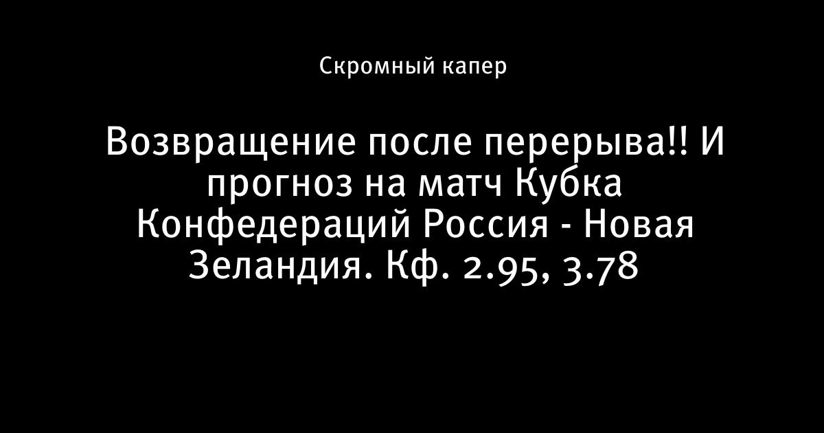 Возвращение после перерыва!! И прогноз на матч Кубка Конфедераций Россия - Новая Зеландия. Кф. 2.95, 3.78