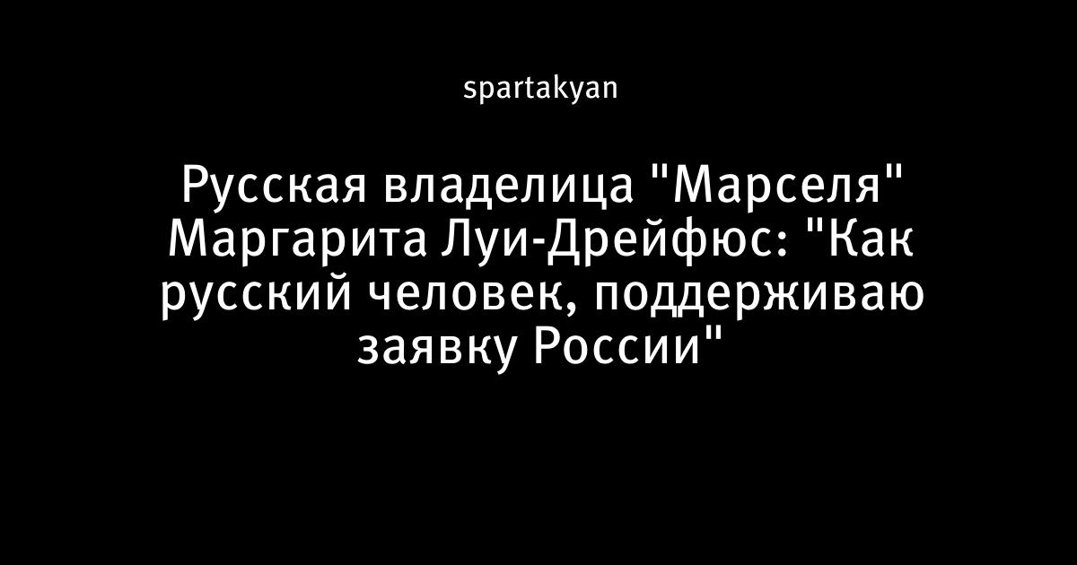 Русская владелица "Марселя" Маргарита Луи-Дрейфюс: "Как русский человек, поддерживаю заявку России"
