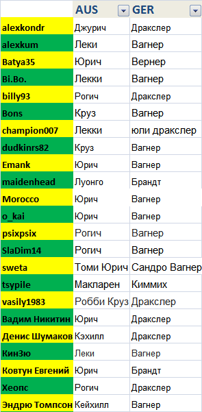 Австралия-Германия 2-3 (Рогич, Юрич - Штиндль, Дракслер, Горетцка +Брандт, Киммих)