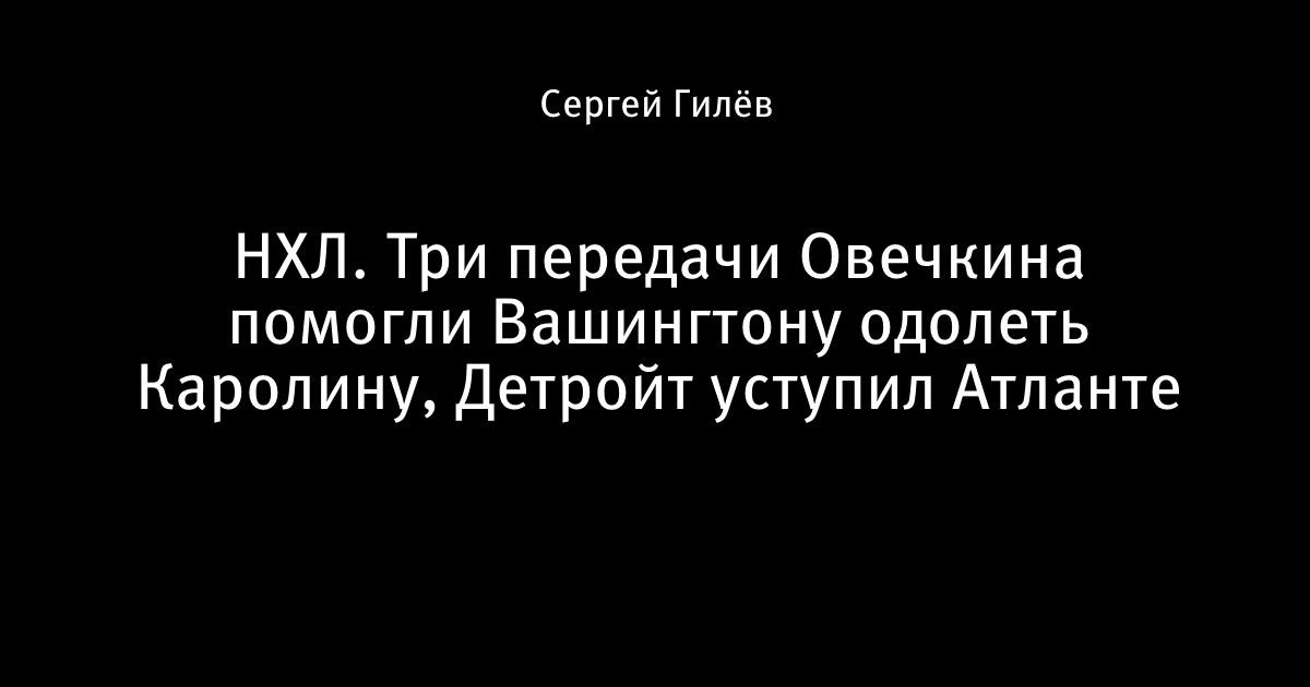 НХЛ. Три передачи Овечкина помогли Вашингтону одолеть Каролину, Детройт уступил Атланте