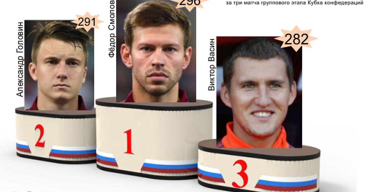По данным компании InStat лучшими игроками сборной России на турнире стали Фёдор Смолов, Александр Головин и Виктор Васин: