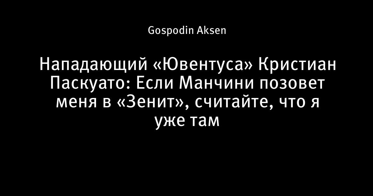 Нападающий «Ювентуса» Кристиан Паскуато: Если Манчини позовет меня в «Зенит», считайте, что я уже там