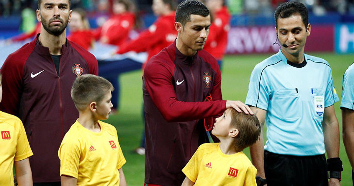 А вот еще один довольный ребенок, с которым Роналду выходил на матч с Мексикой.