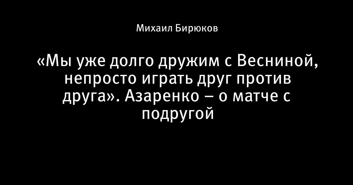 «Мы уже долго дружим с Весниной, непросто играть друг против друга». Азаренко – о матче с подругой