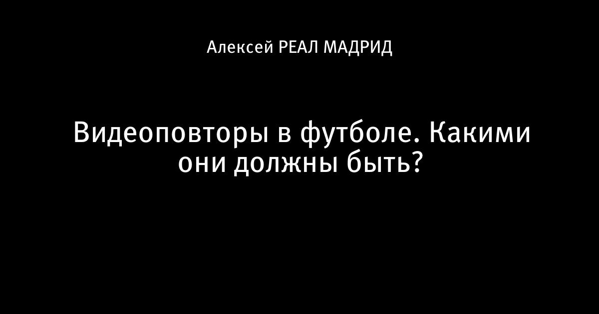 Я хотел бы описать систему видеоповторов, какой она должна быть в моём понимании. Я ни в коем случае не претендую на роль истины в последней инстанции, а просто высказываю своё мнение. Вы можете написать, что думаете по этому поводу в комментариях. Мне будет очень интересно узнать мнение любителей футбола.
