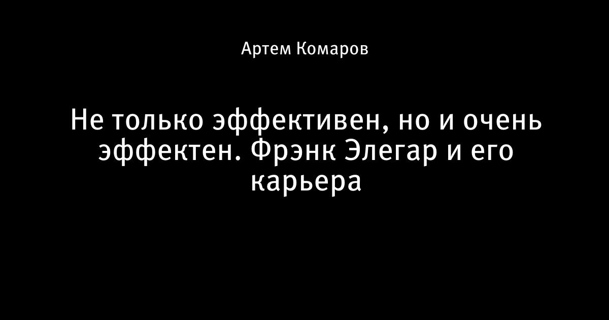 Не только эффективен, но и очень эффектен. Фрэнк Элегар и его карьера