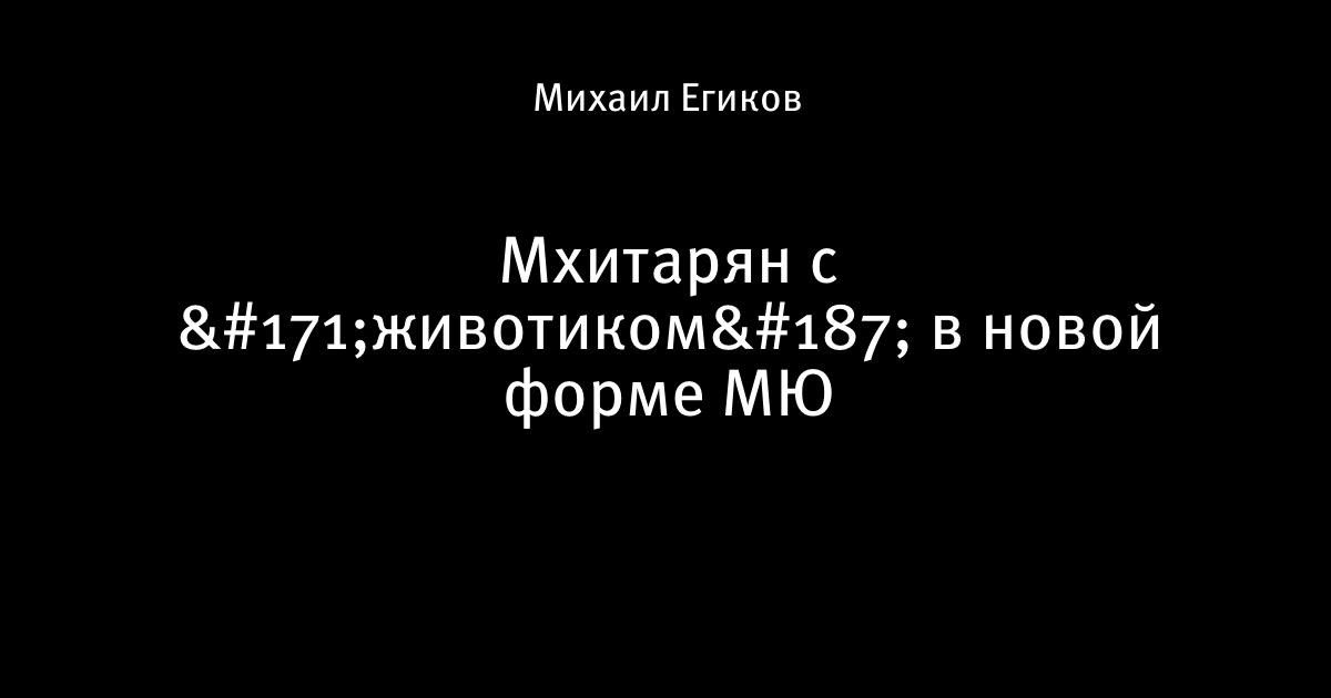 6 июля 2017, 16:21 Мхитарян с «животиком» в новой форме МЮ Автор Михаил Егиков Этот пост опубликован в блоге на Трибуне Sports.ru. Присоединяйтесь к крупнейшему сообществу спортивных болельщиков! Другие посты блога Мы United сборная Армении по футболу Манчестер Юнайтед Генрих Мхитарян
