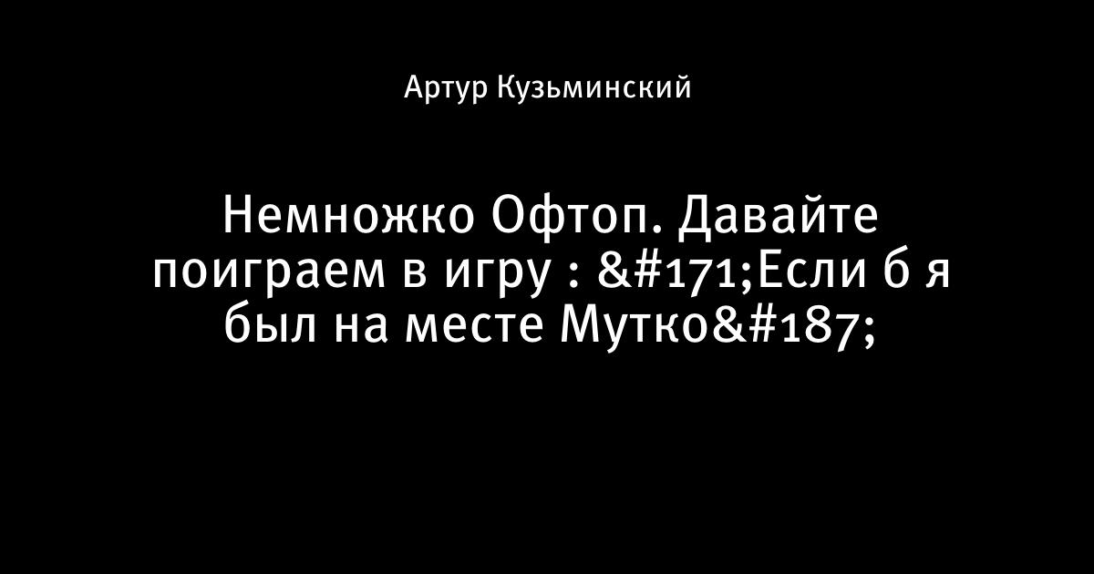 Немножко Офтоп. Давайте поиграем в игру : «Если б я был на месте Мутко»