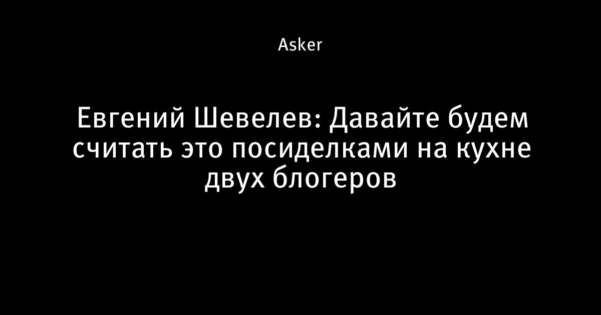 Евгений Шевелев: Давайте будем считать это посиделками на кухне двух блогеров
