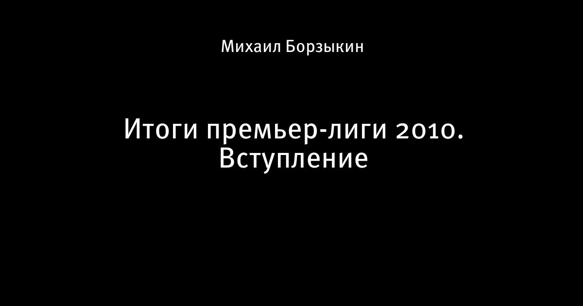 Итоги премьер-лиги 2010. Вступление