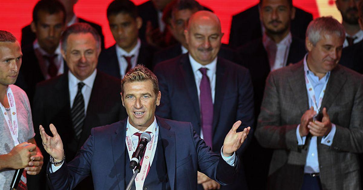 Сама церемония награждения, на которой были в том числе Станислав Черчесов и Виталий Мутко, выглядела так.