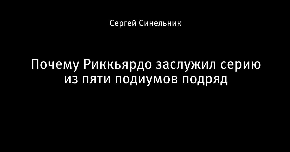Почему Риккьярдо заслужил серию из пяти подиумов подряд