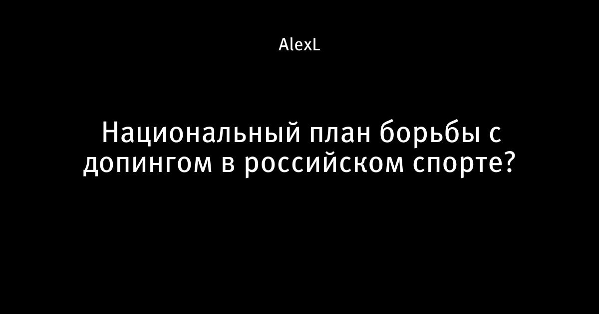 См Распоряжение Правительства РФ от 10.07.2017 №1456-р «Об утверждении комплекса мер по реализации Национального плана борьбы с допингом в российском спорте».