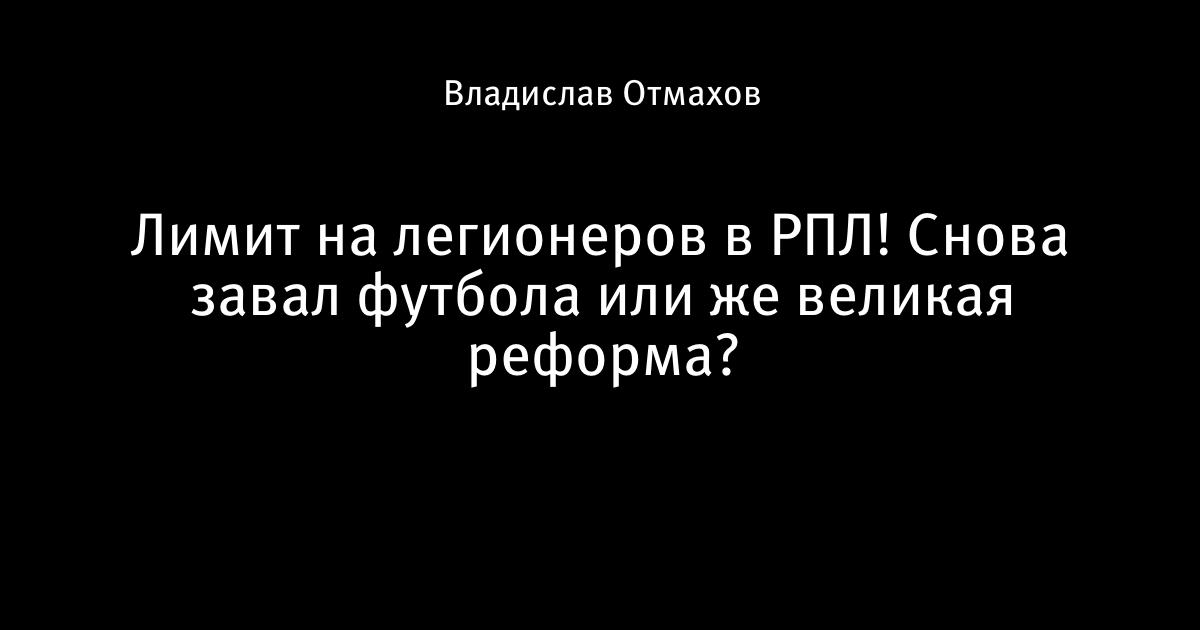 Лимит на легионеров в РПЛ! Снова завал футбола или же великая реформа?