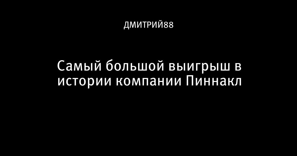 Самый большой выигрыш в истории компании Пиннакл