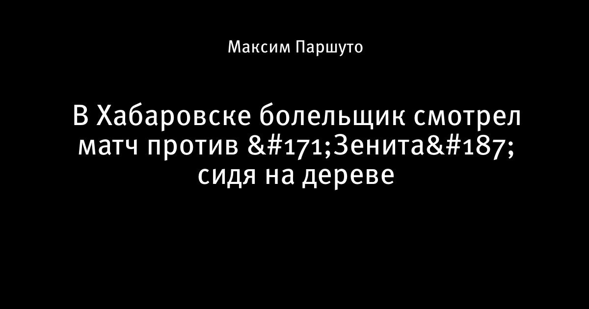 17 июля 2017, 20:37 В Хабаровске болельщик смотрел матч против «Зенита» сидя на дереве Маугли: возвращение Источник: твиттер Егора Крецана Автор Максим Паршуто Этот пост опубликован в блоге на Трибуне Sports.ru. Присоединяйтесь к крупнейшему сообществу спортивных болельщиков! Другие посты блога Вы это видели? Зенит болельщики премьер-лига Англия СКА Хабаровск