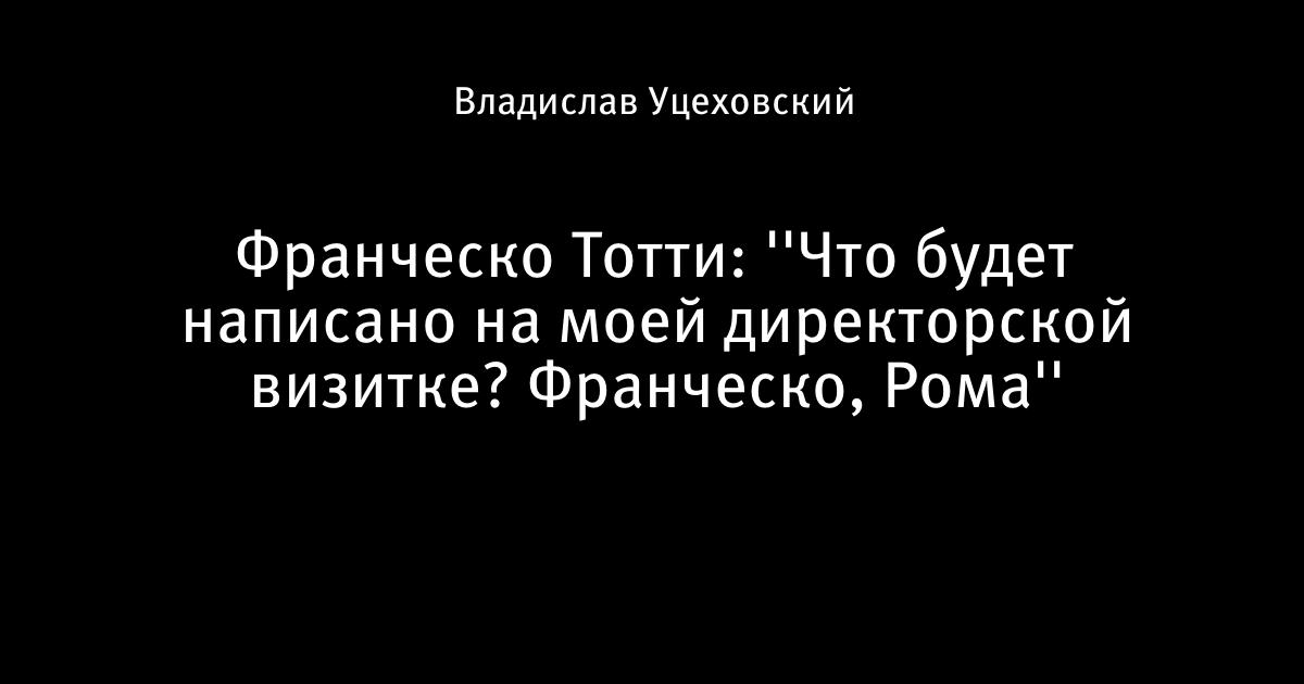 "Как теперь ко мне обращаться? Как всегда, зовите меня просто Франческо. Что будет написано на моей директорской визитке? Франческо, Рома".