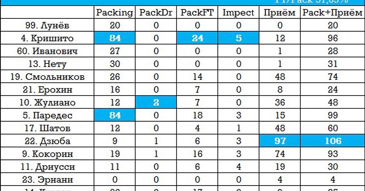 Packing статистика Зенита, на десерт