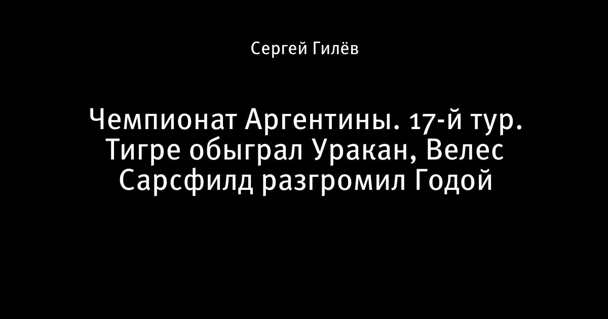 Чемпионат Аргентины. 17-й тур. Тигре обыграл Уракан, Велес Сарсфилд разгромил Годой