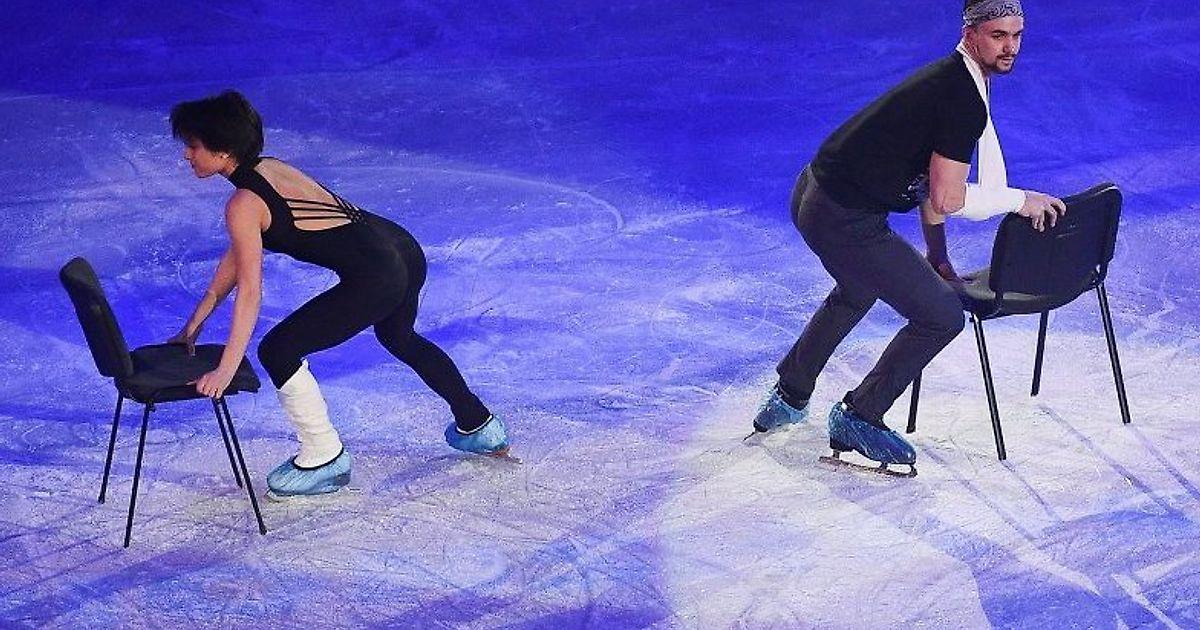 Когда я увидел этот показательный номер Столбовой/Климова, в момент когда они уселись рядом на стульчики, в голову сразу пришла эта песня.