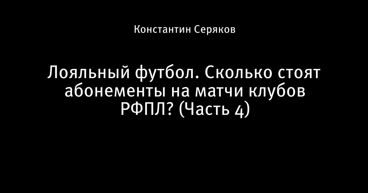 Лояльный футбол. Сколько стоят абонементы на матчи клубов РФПЛ? (Часть 4)