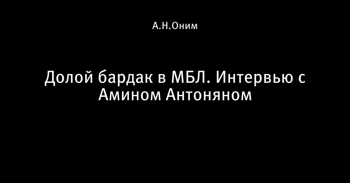 Долой бардак в МБЛ. Интервью с Амином Антоняном