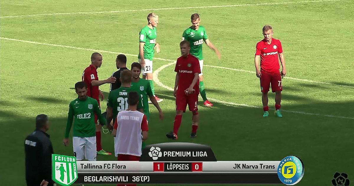Гости также создали несколько хороших шансов, но всякий раз были проблемы с последним пасом — прострелы Святослава Яковлева так ни разу и не нашли адресата. Впрочем, и наконечник атак «Флоры» грузинский легионер Закария Бегларишвили был также надежно прикрыт защитниками нарвитян.