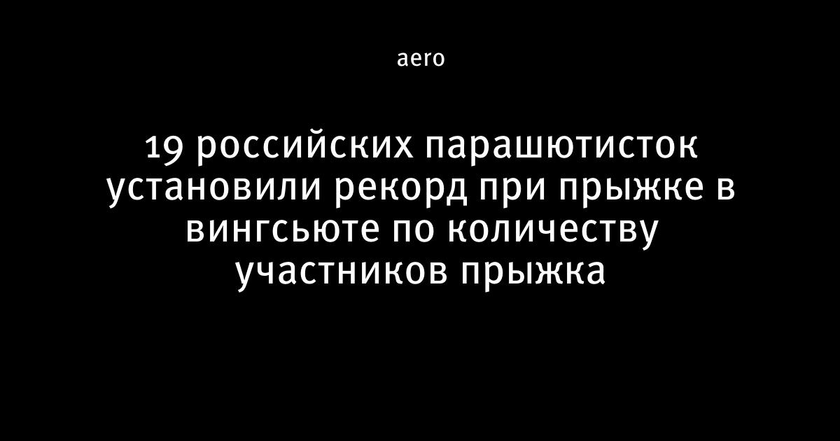 2 августа 2017, 18:26 19 российских парашютисток установили рекорд при прыжке в вингсьюте по количеству участников прыжка Автор aero Этот пост опубликован в блоге на Трибуне Sports.ru. Присоединяйтесь к крупнейшему сообществу спортивных болельщиков! Другие посты блога Вы это видели?
