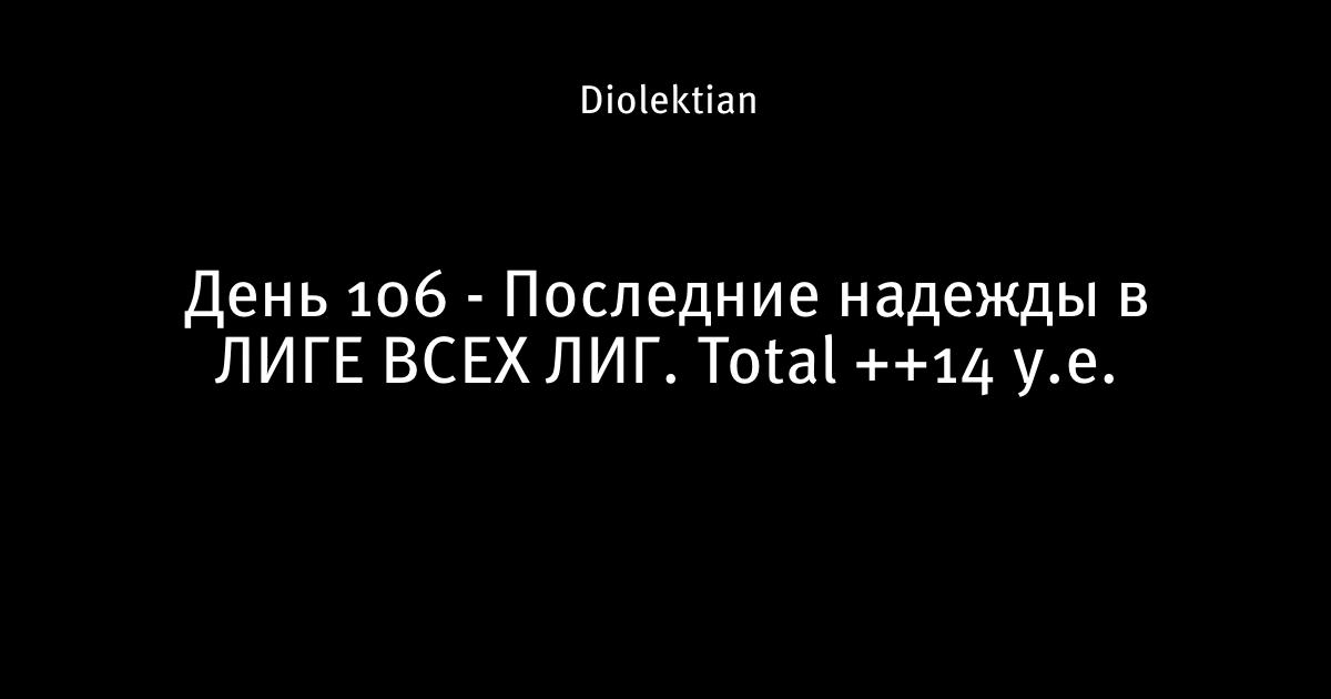 День 106 - Последние надежды в ЛИГЕ ВСЕХ ЛИГ. Total ++14 y.e.