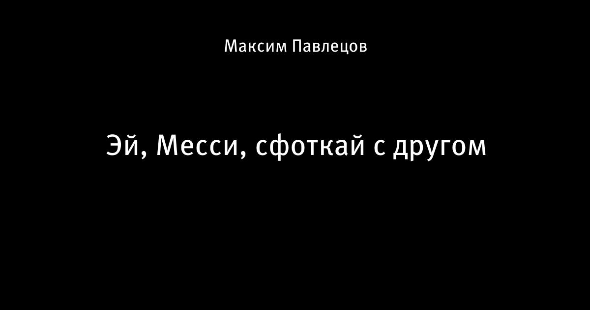 3 августа 2017, 16:34 Эй, Месси, сфоткай с другом Автор Максим Павлецов Этот пост опубликован в блоге на Трибуне Sports.ru. Присоединяйтесь к крупнейшему сообществу спортивных болельщиков! Другие посты блога Вы это видели? Барселона Лионель Месси
