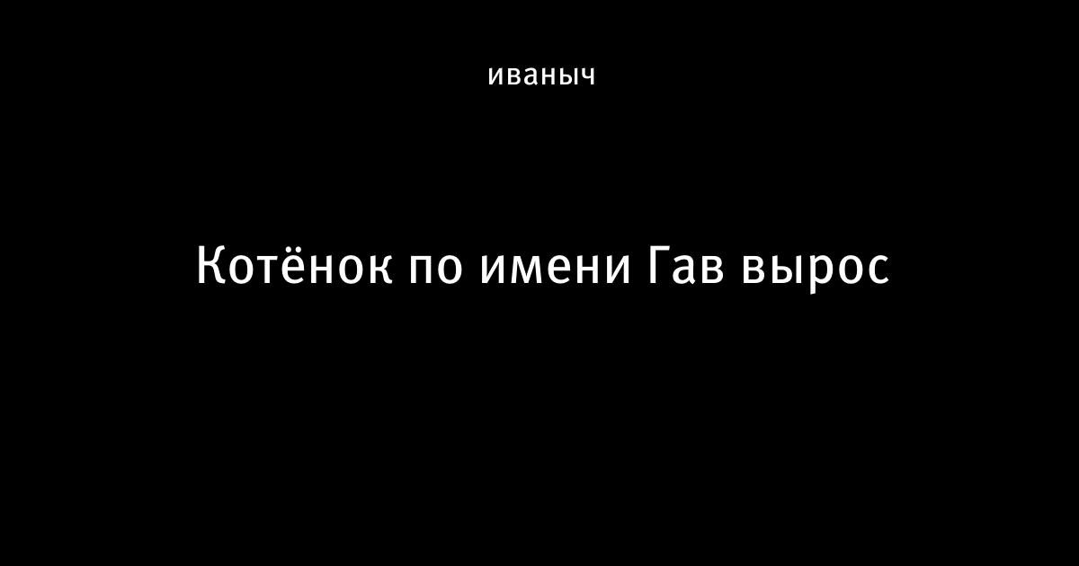 6 августа 2017, 12:08 🐶 Котёнок по имени Гав вырос Этот пост написан пользователем Sports.ru, начать писать может каждый болельщик (сделать это можно здесь). Автор иваныч Этот пост опубликован в блоге на Трибуне Sports.ru. Присоединяйтесь к крупнейшему сообществу спортивных болельщиков! Другие посты блога Кот дня коты